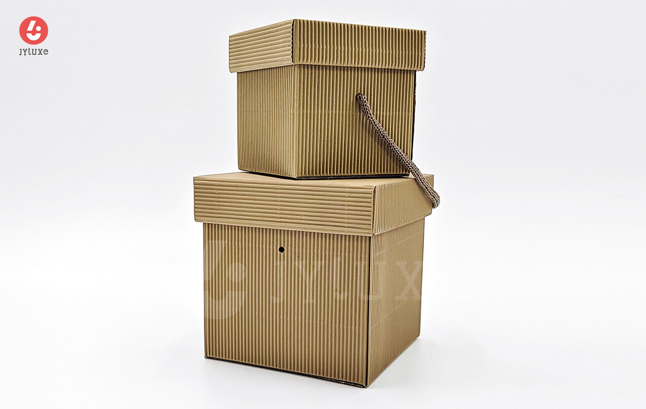 - Description: The outer layer uses corrugated paper, laminated with inner thick paperboard to form a rigid box, equipped with rope handle for easy carrying. It delivers a minimalist and elegant comfortable experience, suitable for exquisite and creative products or gifts, providing sturdy protection for your products while enhancing brand temperament.