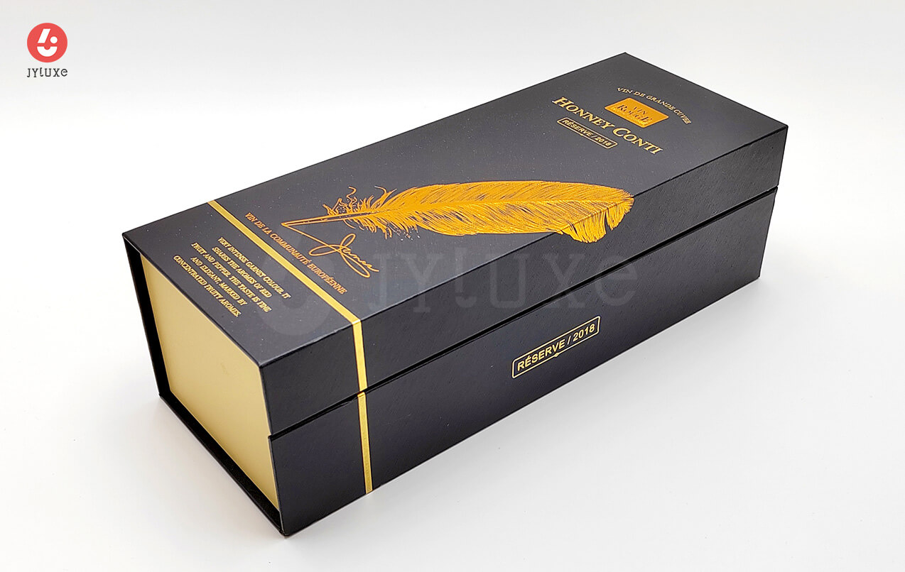 - Description: Using luxury magnetic closure boxes to customize your Spirit packaging, enhancing your brand image and unboxing experience. Exquisite foil stamping craftsmanship combined with unique textured touch,Empower Packaging luxurious texture and stunning visual performance. Perfect for premium spirits, whiskey, vodka, brandy, rum, liqueur, mead etc. or other high-end foods, products and gifts. End-to-end solutions from conception to completion, customized according to your size, brand information, surface treatment requirements etc. Welcome to inquire about cooperation.